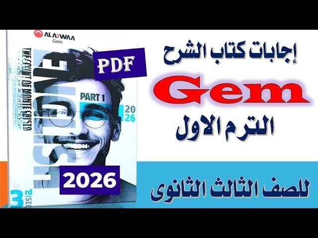 إجابات كتاب جيم للصف الثالث الثانوي الترم الأول 2026..كتاب Gem للصف الثالث الثانوي يعتبر مرجع أساسي متكامل في اللغة الإنجليزية، يشرح قواعد اللغة والترجمة بأسلوب تفصيلي، ويقدم تدريبات على الاختيارات والأسئلة المقالية مع حلول وأسئلة تدريبية، بالإضافة إلى شرح لكيفية كتابة البراجراف والإيميل والمقال. يتضمن الكتاب قسمًا للترجمة مع شرح لعلامات الترقيم ويتوفر في المكتبات بسعر 220 جنيهًا.
