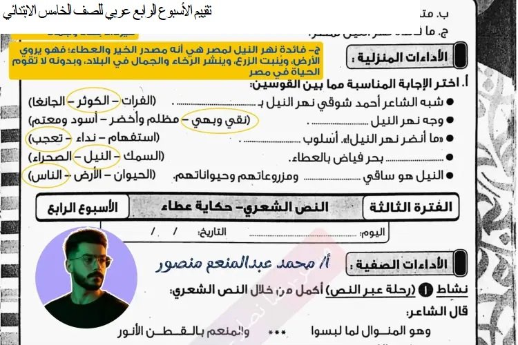 لمتابعة باقي أسئلة وحل الأداء الصفي وواجب وتقييم الأسبوع الرابع عربي للصف الخامس الابتدائي ترم أول 2026 يمكنك الإطلاع على الأسئلة والإجابات في الصور التالية: