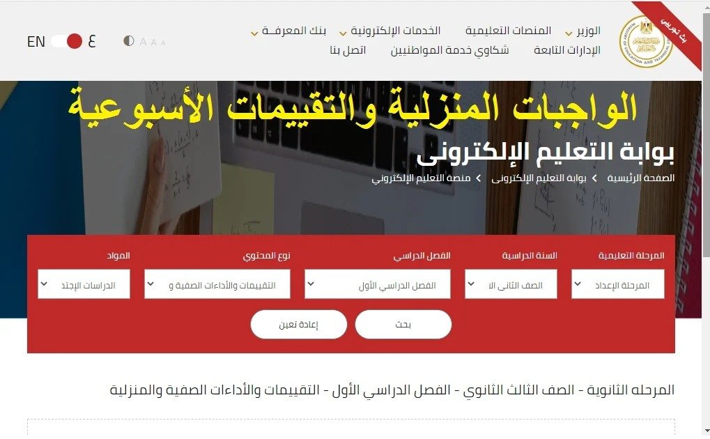 وحرصت وزارة التربية والتعليم،علي توضيح خطوات الدخول الي تقييمات وزارة التربية والتعليم 2026 الصف الأول الثانوي للتسهيل علي الطلاب وذلك من خلال الموقع الرسمي لوزارة التربية والتعليم وهي كالتالي: