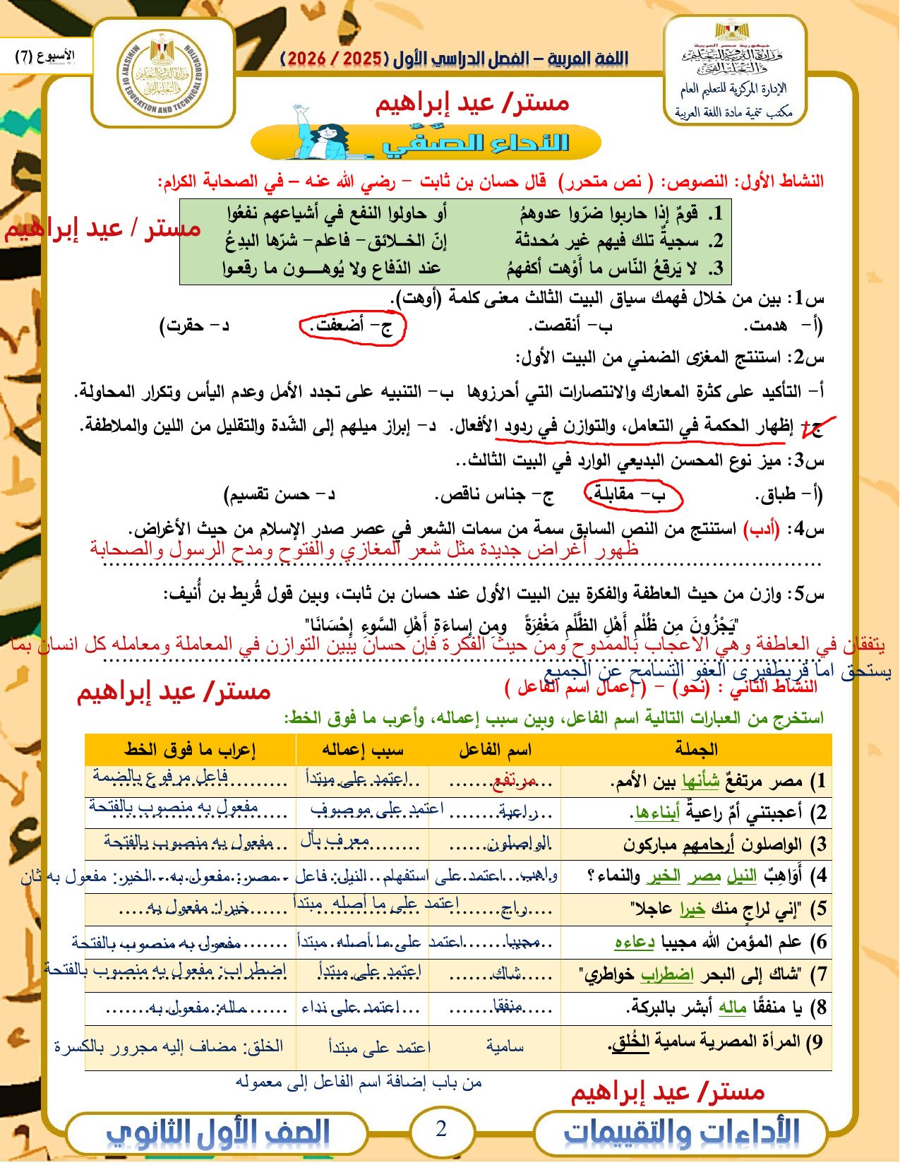 النشاط الثاني : (نحو) – (إعمال اسم الفاعل )