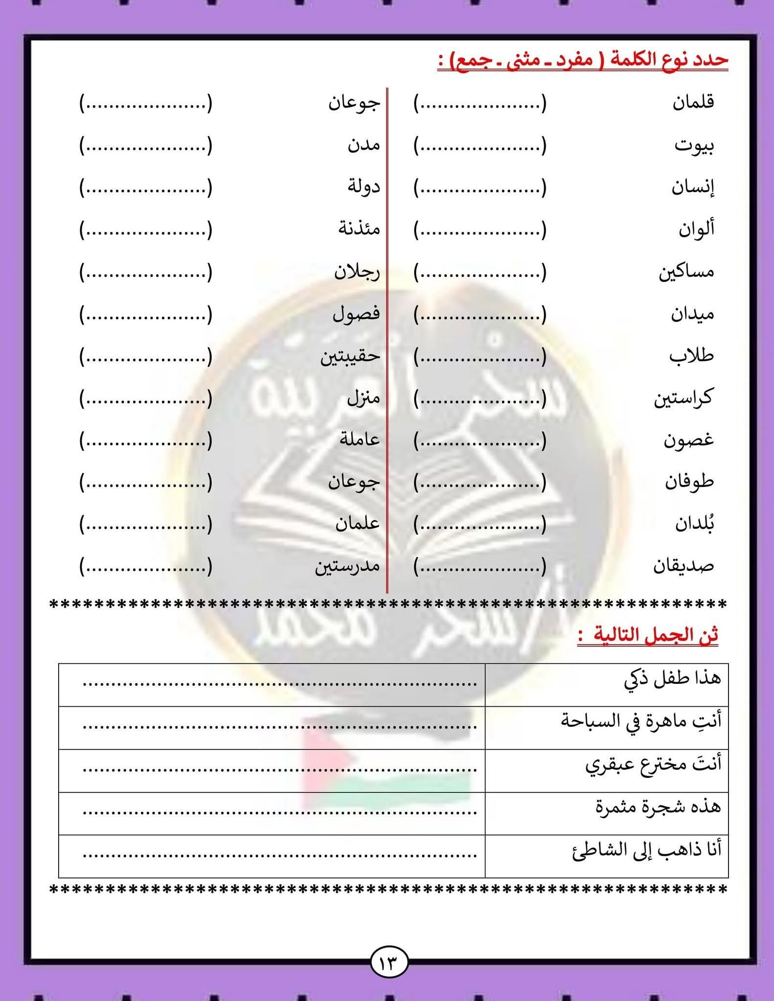 حدد نوع الجمع للكلمات التي تحتها خط :