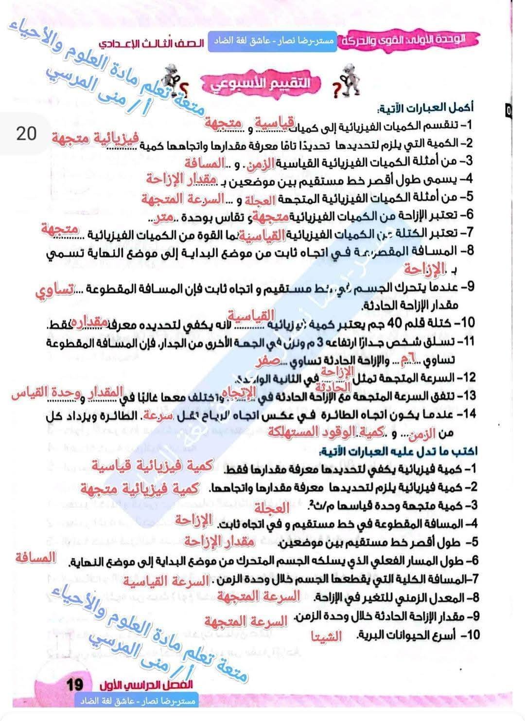 مراجعة مراجعة مادة العلوم والأحياء للشهادة الإعدادية