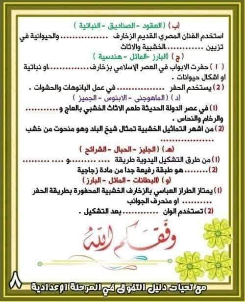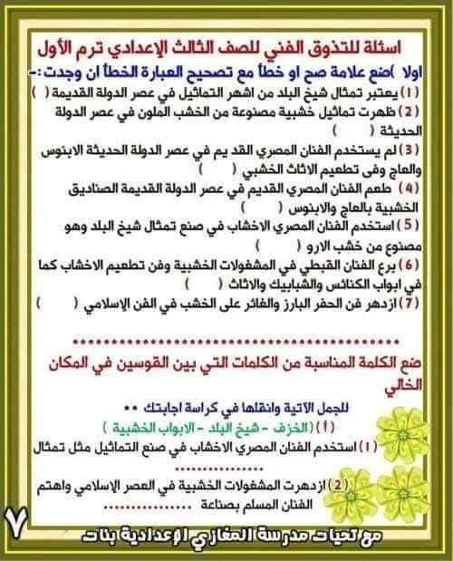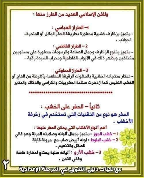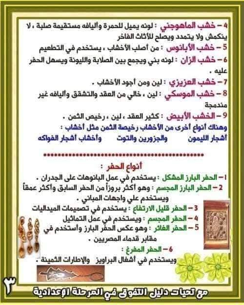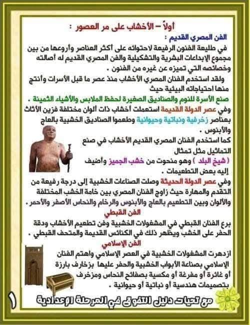 وتناول منهج منهج الصف الثالث الإعدادي الأخشاب على مر العصور، والذي ذكر الفن المصري القديم وأنه في طليعة الفنون الرفيعة لاحتوائه على أكثر العناصر وأروعها من بين مجموع الإبداعات البشرية والتشكيلية والفن المصري القديم له أصالته وخصائصه التي تميزه عن غيره من الفنون .